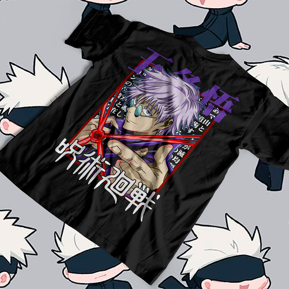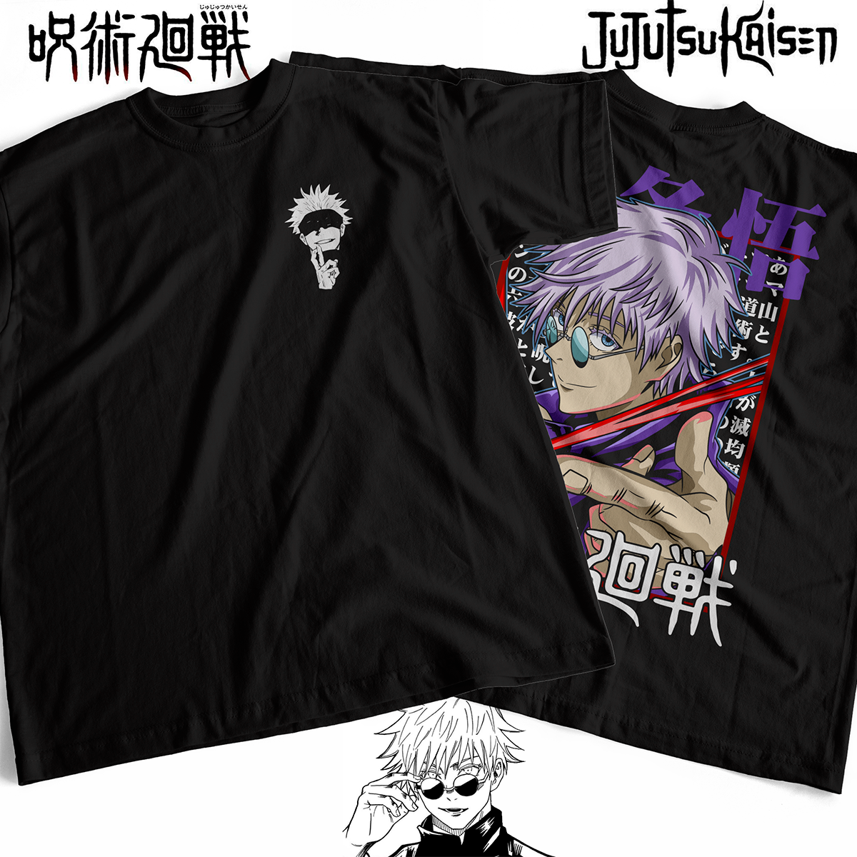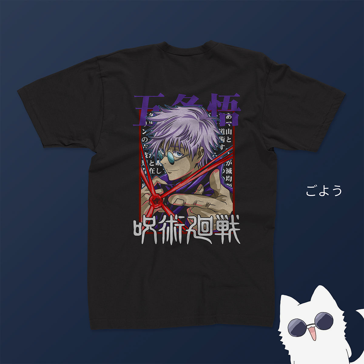 Esta playera está inspirada en Satoru Gojo, el hechicero más fuerte del universo Jujutsu Kaisen.