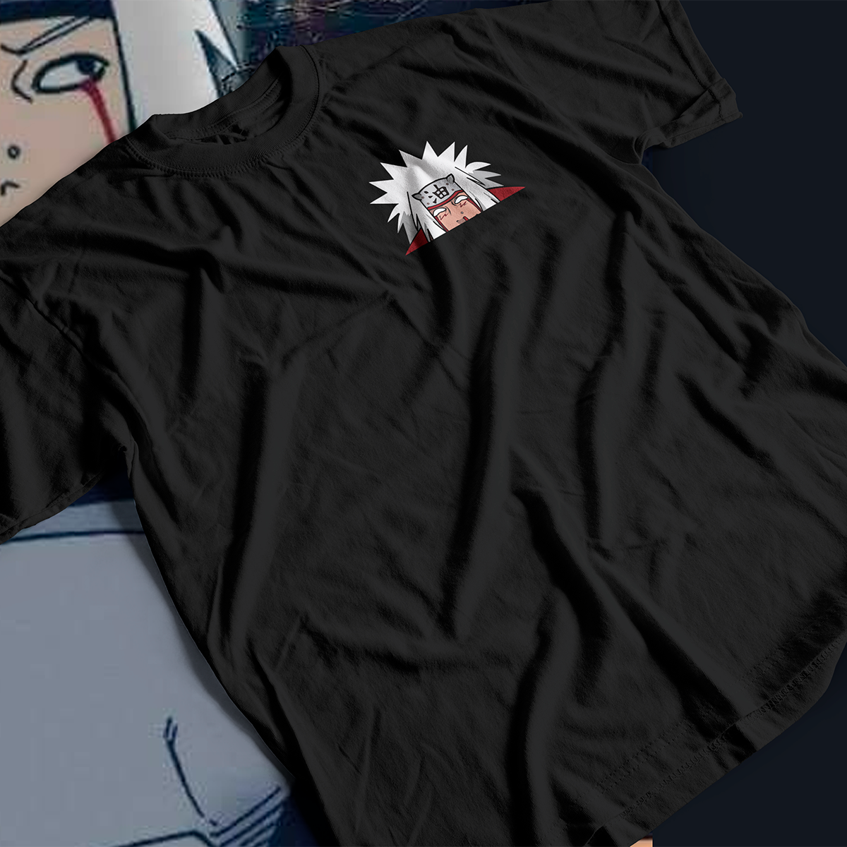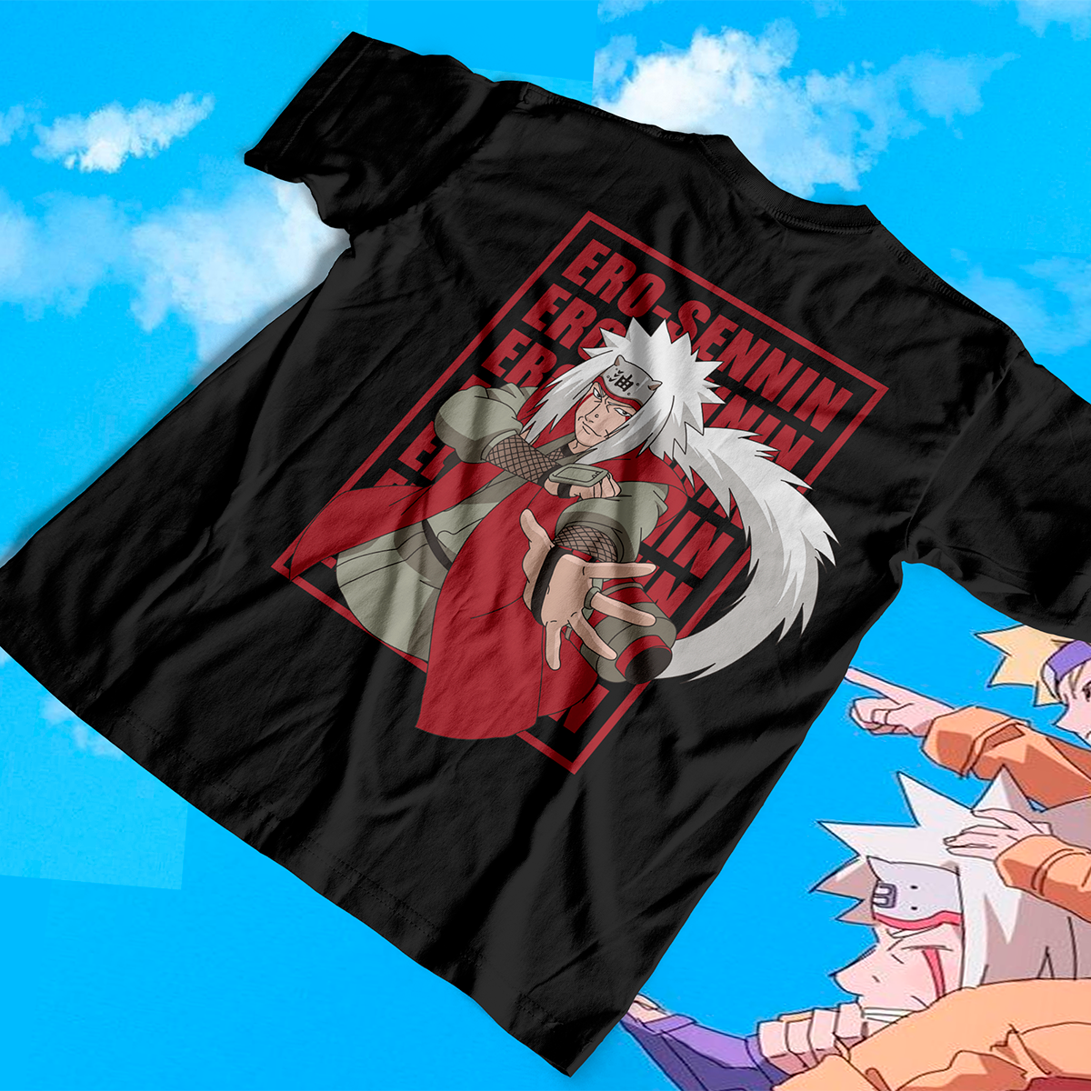 Esta playera rinde tributo al inolvidable Jiraiya, el Sannin Legendario de Konoha, también conocido como el gran Ero-Sennin.