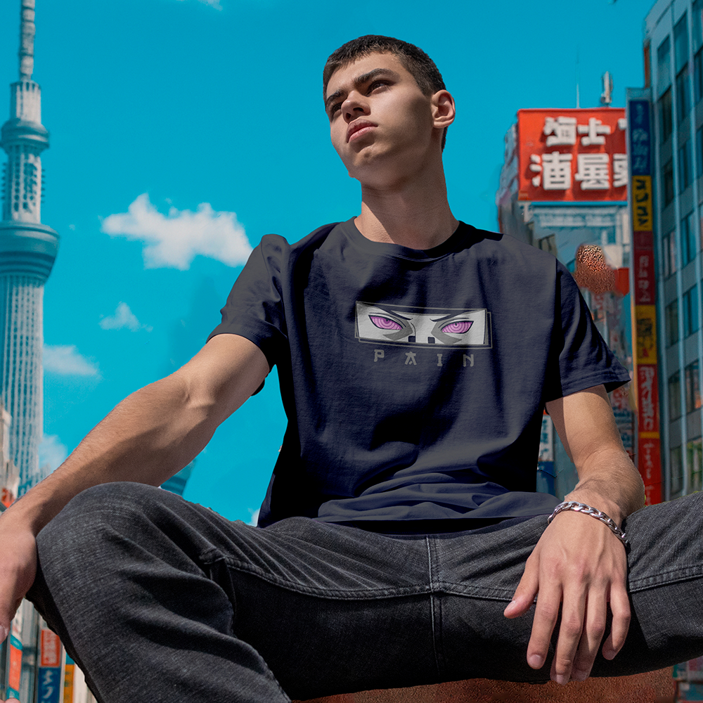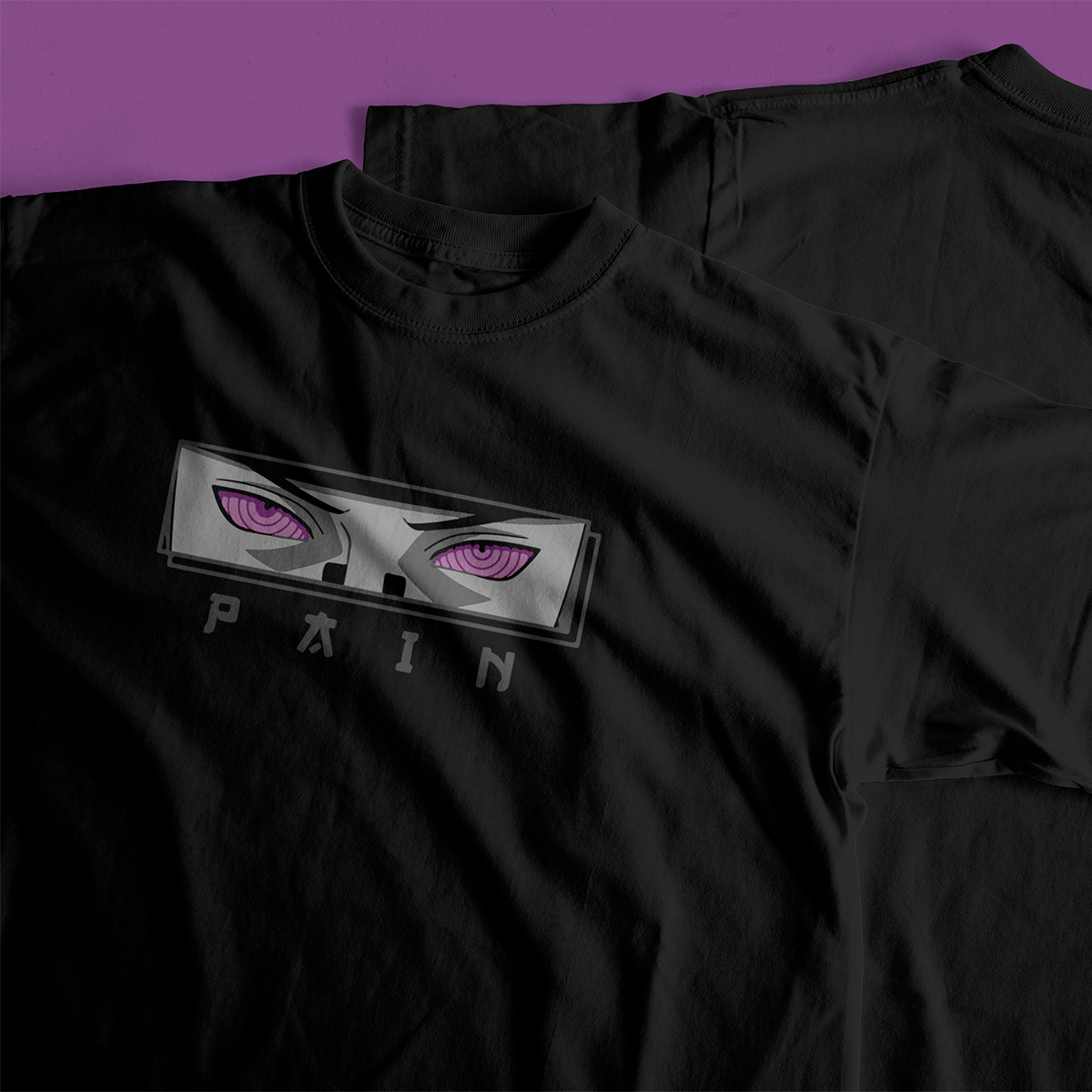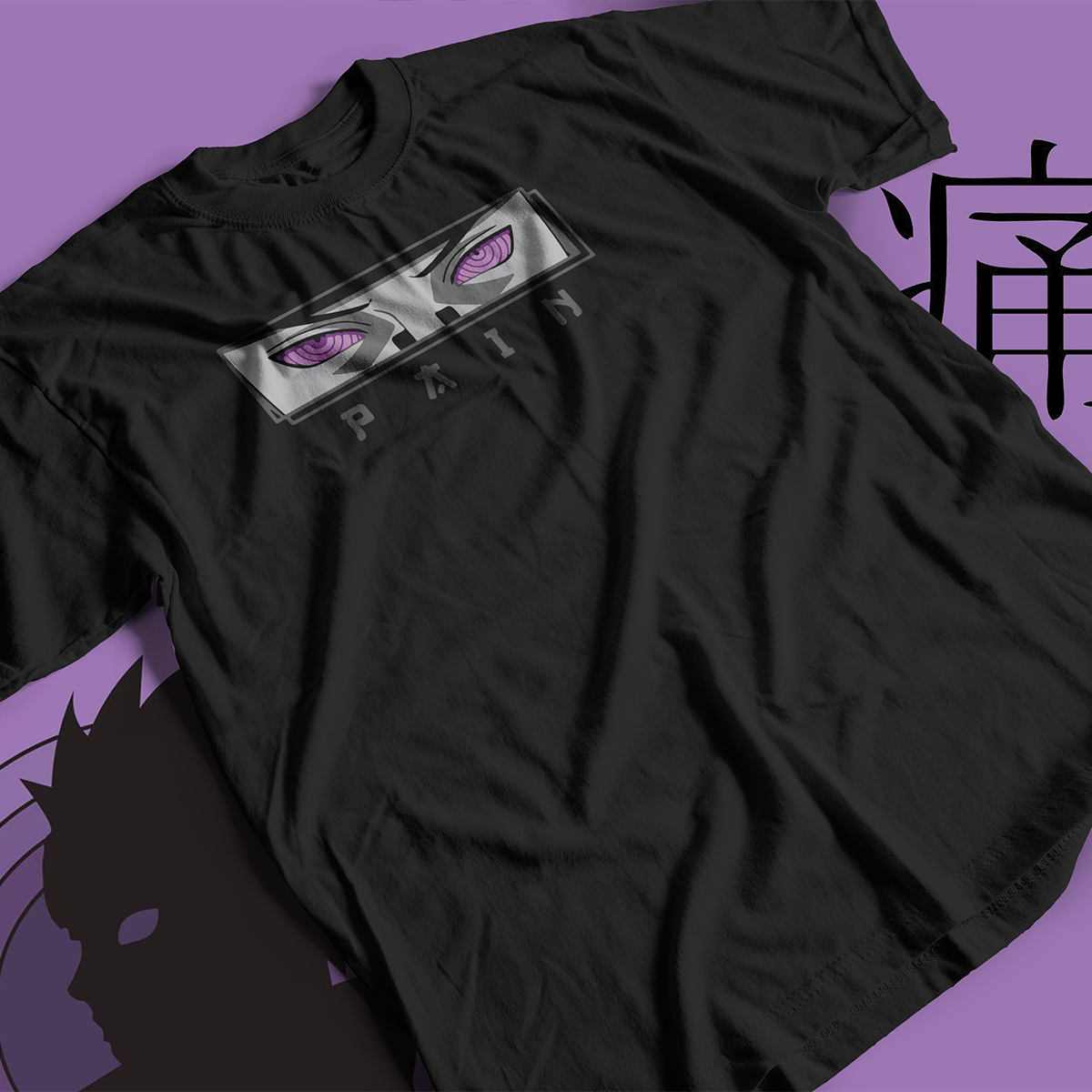Esta playera negra rinde homenaje a uno de los villanos más icónicos del anime: Pain, líder de la Akatsuki y símbolo del cambio radical.